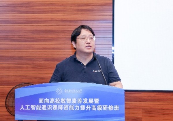 南京航空航天大学副校长施大宁在致辞中表示,当前以人工智能为核心的新一轮科技革命正深刻重塑全球经济结构和社会形态,高等教育面临前所未有的机遇与挑战。他强调,提升师生人工智能素养是服务国家创新发展的紧迫任务。南京航空航天大学已将人工智能赋能教育教学列为重点工作,构建了分层分类的教师发展课程体系。施校长指出,本次研修班致力于推动AI通识教育创新,希望与会专家和同仁在交流研讨中收获丰硕成果,共同推动高等教育的高质量发展。